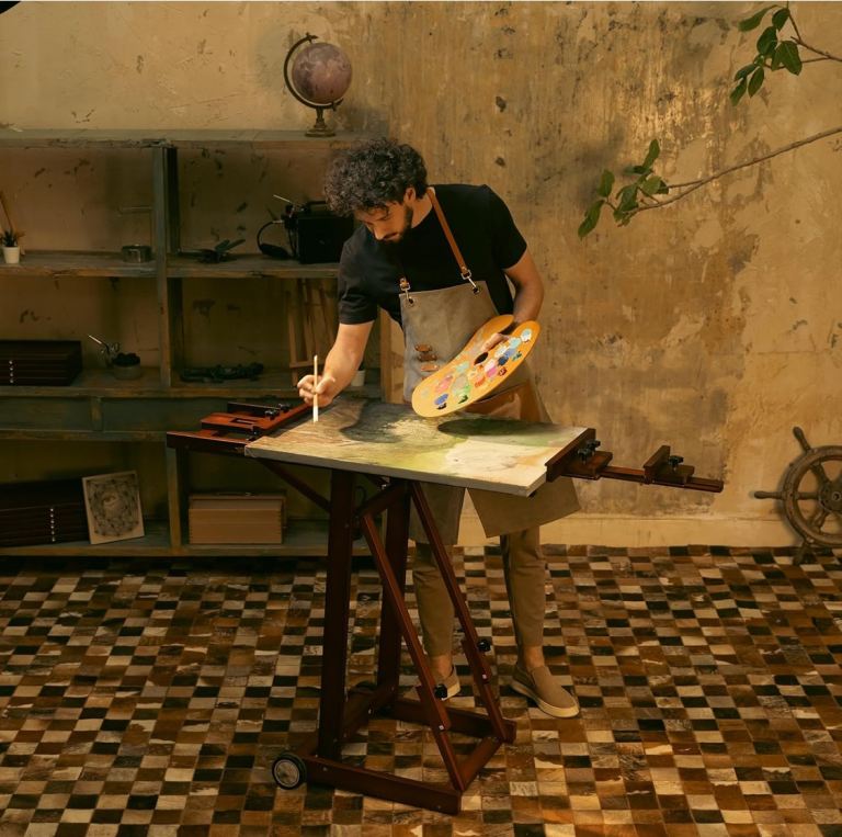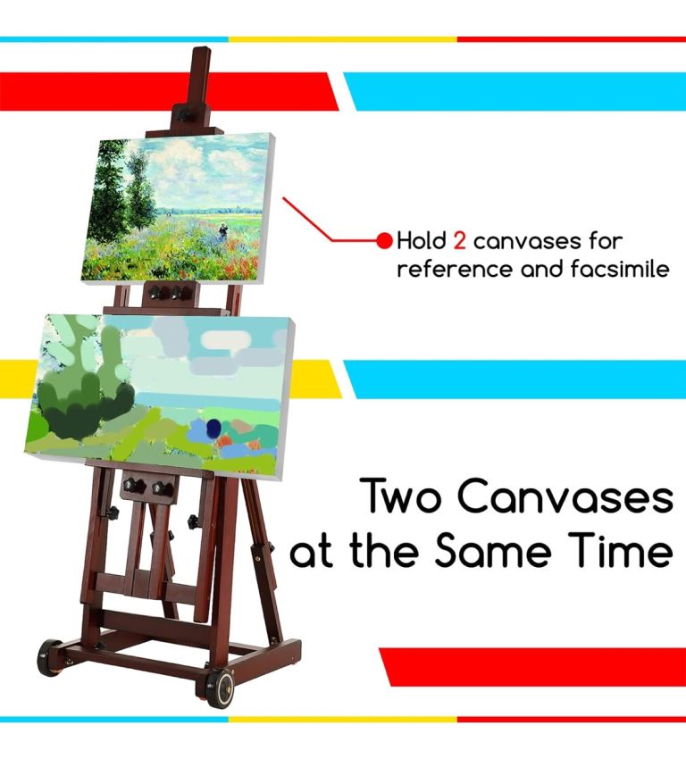 Can hold two canvases at once and adjusts to multiple angles.
