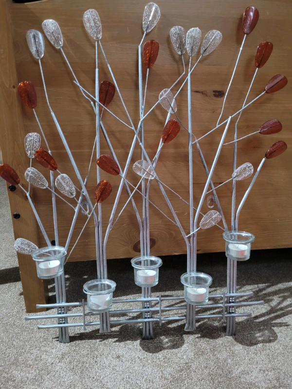 Red and white leaf metal wall art with 5 tealight holders. Excellent condition and from a smoke and pet free home.