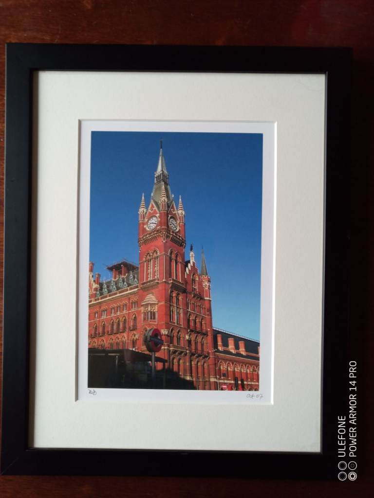 40cm x 30cm framed 2007 photographic print of restored Midland Grand Hotel in London. Signed DD Oct '07. Good condition, weight 1kg. Collect from EH50 or postage at cost (buyer pays). Reasonable offers considered.