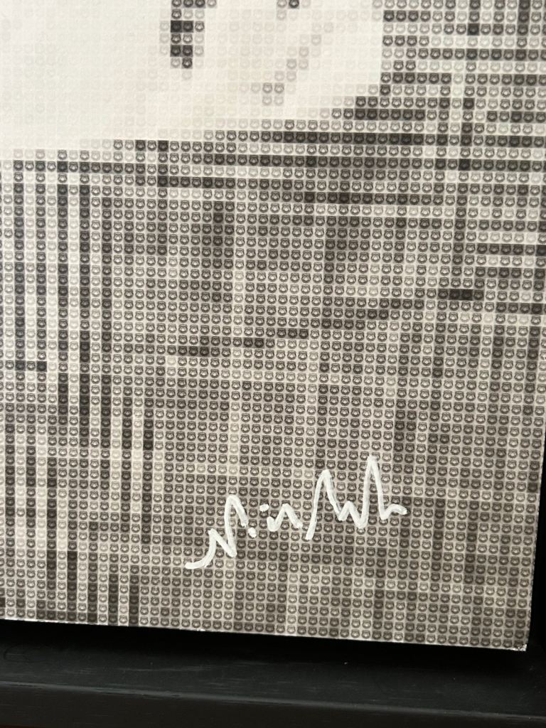 Nick begins by selecting online images to retouch, enhancing them by removing imperfections and adjusting details through Photoshop's layered approach. He isolates various elements into separate layers, allowing focused refinement. Nick sometimes incorporates additional details from other images, integrating them seamlessly through masking. Subsequently, he pixelates the image and overlays it with his chosen repeated icon, often a recognisable brand logo associated with the subject. He carefully refines each layer, ensuring the graphics remain visible and harmonious. Nick then adds colour to each layer, meticulously hand-painting with a tablet, matching the colours he'll use for the final airbrushed painting. The coloured piece is printed in mosaic form and further perfected by many hours of hand painting, utilising airbrushing, inks, stencils, pens, and brushes to achieve the desired tone and detail.