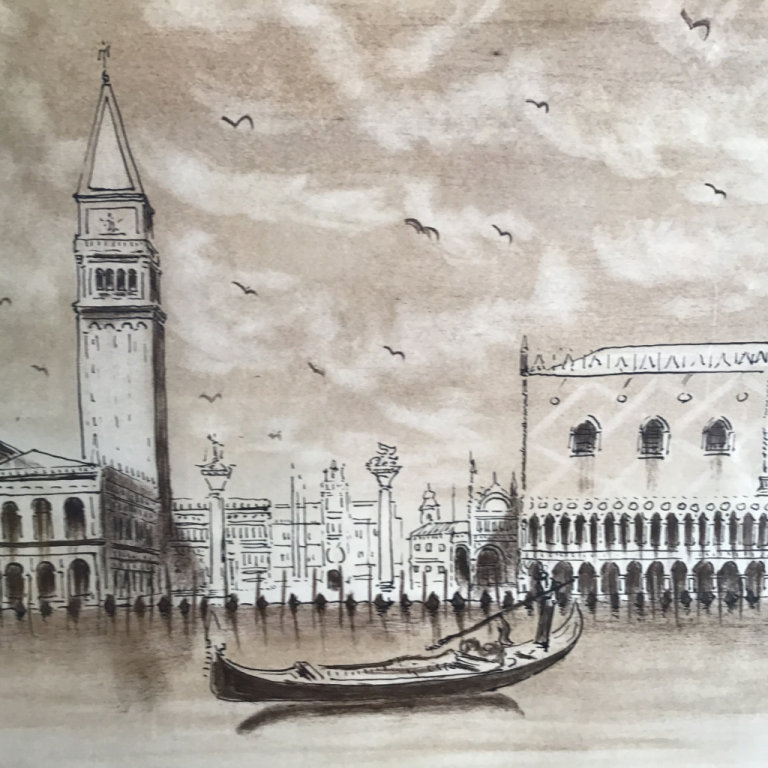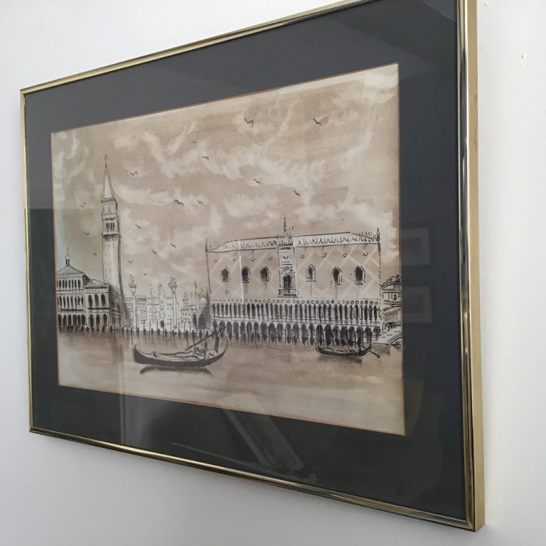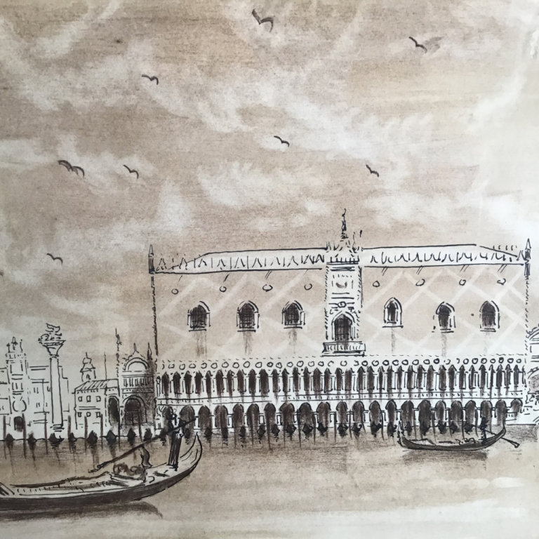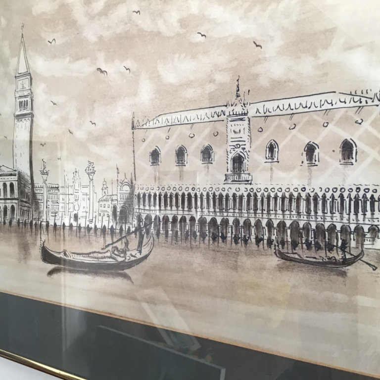 Original Pen and Ink with Water Colour Wash of Venice in Quality Frame