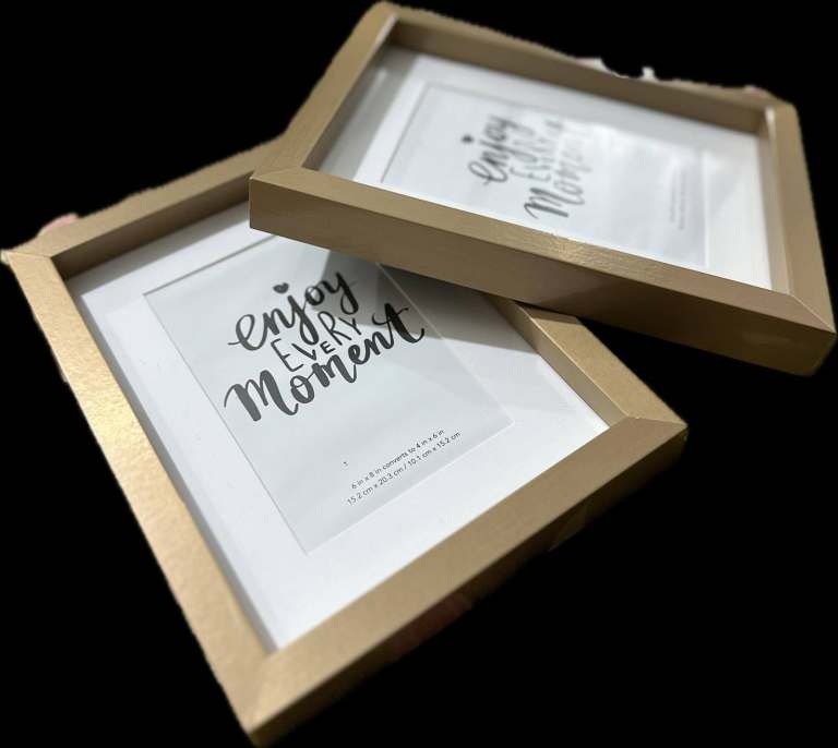 Blue and golden colour available. Suitable for 6x8 inch picture. Both wall hanging and table decoration.
