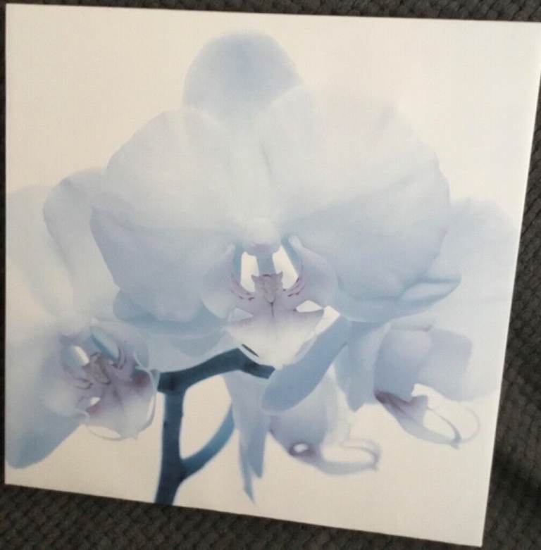 Here I have a lovely print of a subtle blue Iris (I think that is what it is, but it may be an orchid, I think!) against a white background and stretched over a wooden frame. It is in great condition, with no stains, rips, holes, tears or scratches, and is c.16” x 16” ( 41cm), with a depth of c. 1.5” (3.5cm) in size. It is a really nice, pretty picture, comes from a pet/smoke-free home, and is priced to sell. It can be collected from CH48 and, any questions, please do not hesitate to ask. Thank you.