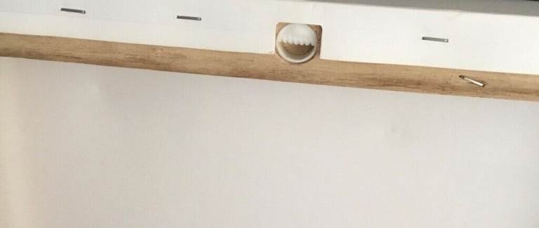 Picture of a blue iris with white background on wooden frame