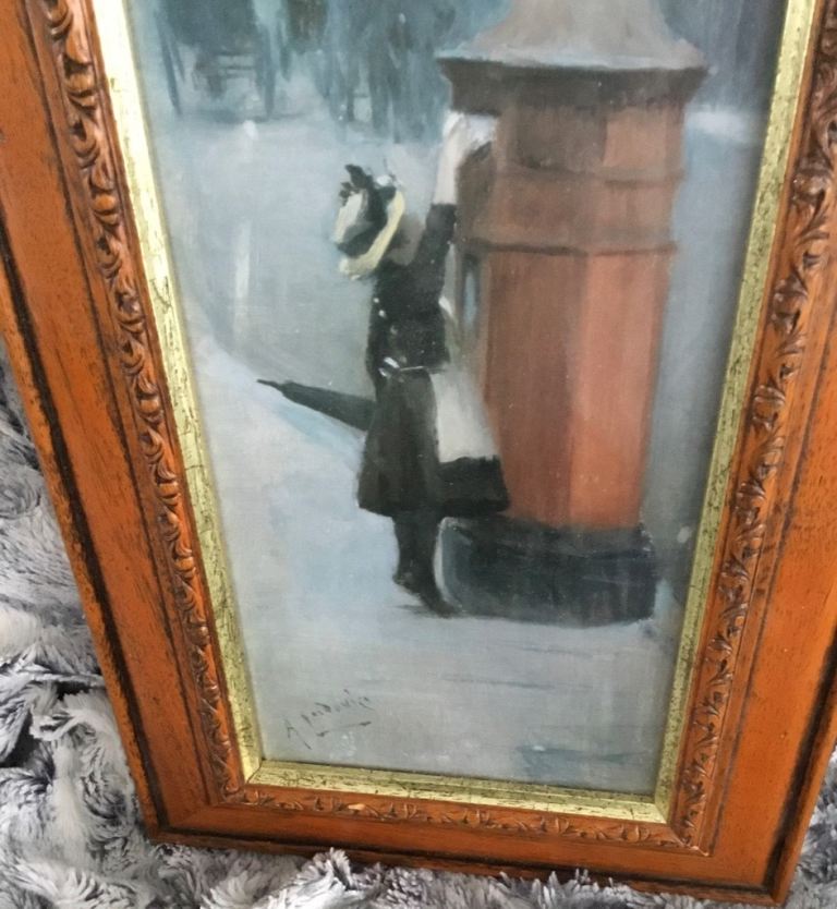 Picture “Posting a Letter” by Albert Ludovici Jnr & Wooden Frame