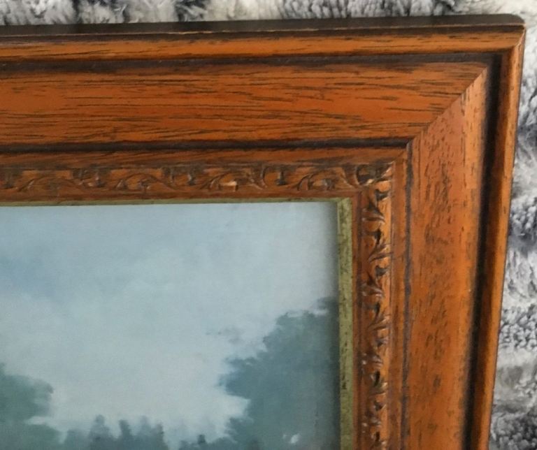 Here I have a pretty picture; “Posting a Letter” by Albert Ludovici Jnr in a pretty wooden frame, as per pics. It is just a copy signed print, I think, and is sold as such because I am no expert. The wooden frame is relatively ornate, with carving and a gold strip around the picture glass and it is rectangular in shape, with dimensions of c.28.5cm Wide & c.56.5cm in Height. I think it could probably be hung either vertical or horizontal, if a different print was placed in it, but it currently has fixings for vertical display. Overall, this is a pretty picture and frame, in good aged condition with a few tiny nicks (see pics). It is priced to sell (similar pics are going for much more on eBay, but frames are not as nice!) although a reasonable offer may be considered too. Collection is from CH48 and, any questions, please do not hesitate to ask. Thank you.