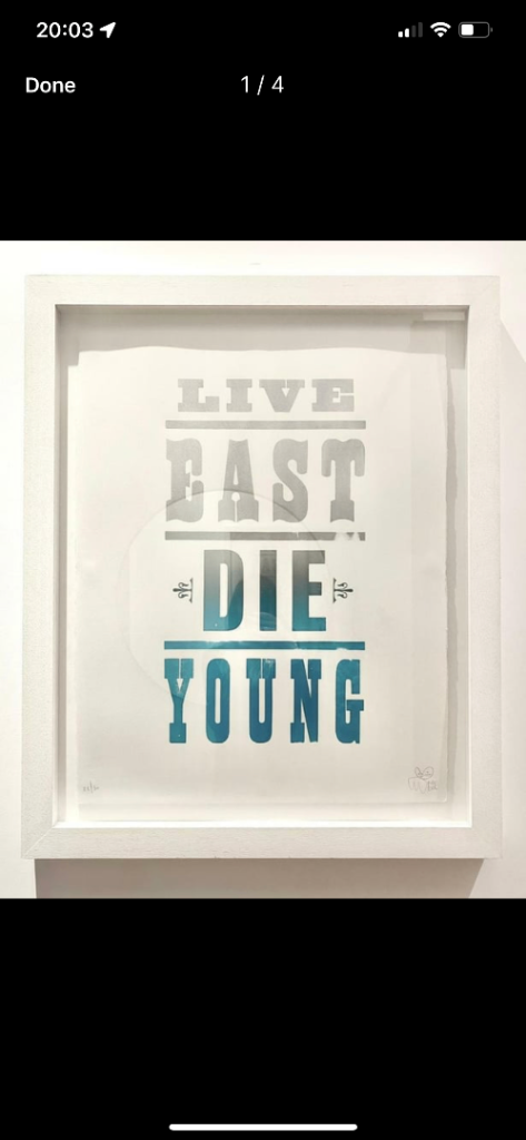 Posting for 3+ yearsPure Evil Limited Edition "Live East Die Young" Print: Signed & Framed