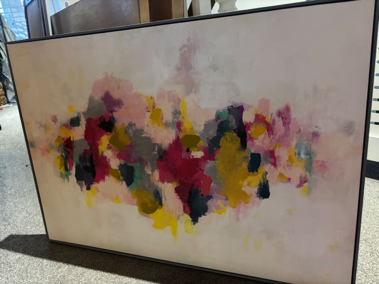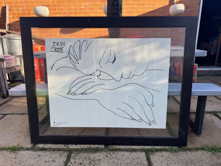 Float framed so you can see the deckled edge of the paper. Frame is solid wood in white and ready to hang. Done professionally in Nelly Duff art shop. Cost £300 in total.
