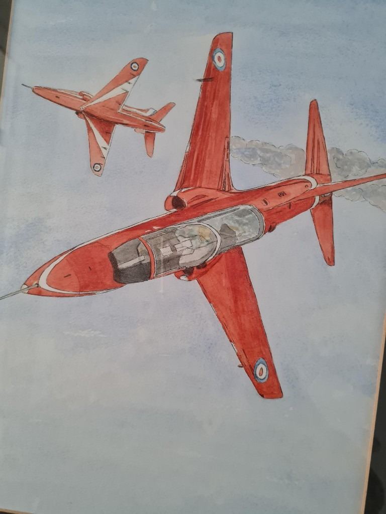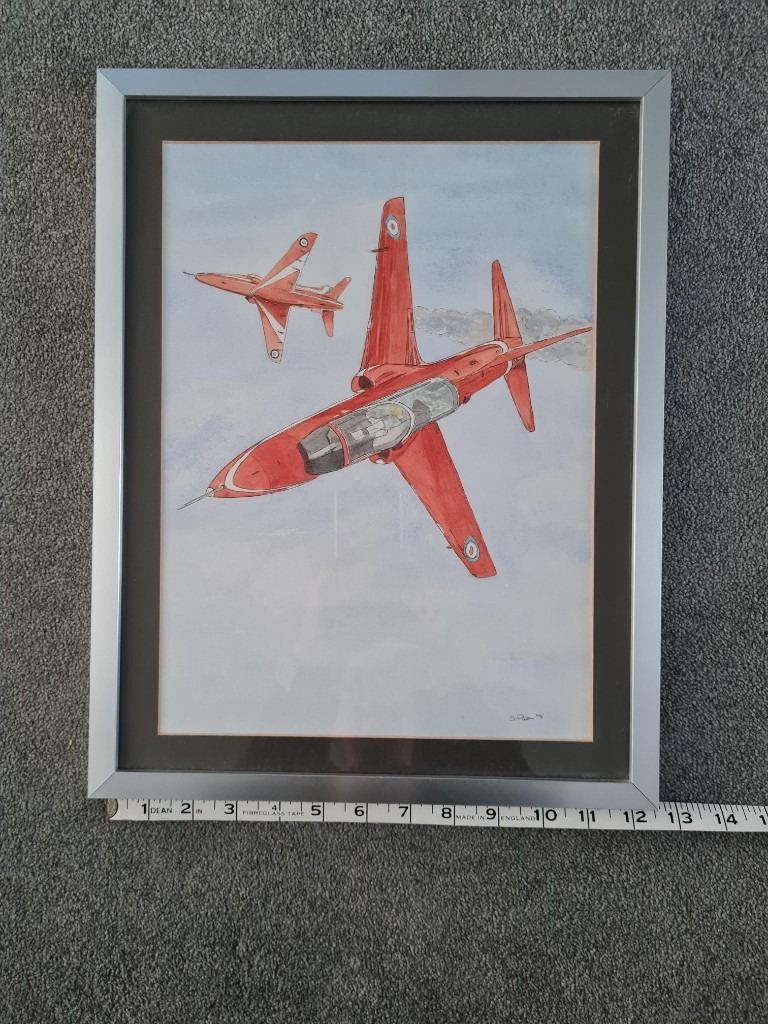 Framed painting of the Red Arrows by an unknown artist. Lovely picture. 13" x 16". Wall mountable. Free collection or can post for additional postage fee of £3.20.