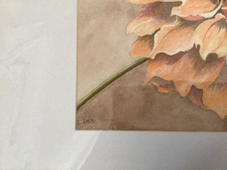 Original watercolour painting size 50cm x 50cm in a 10cm off white mount ready to frame. Painting out of mount is 30cm x 30cm. Lovely detail to petals. A one off original, reduced to £15.