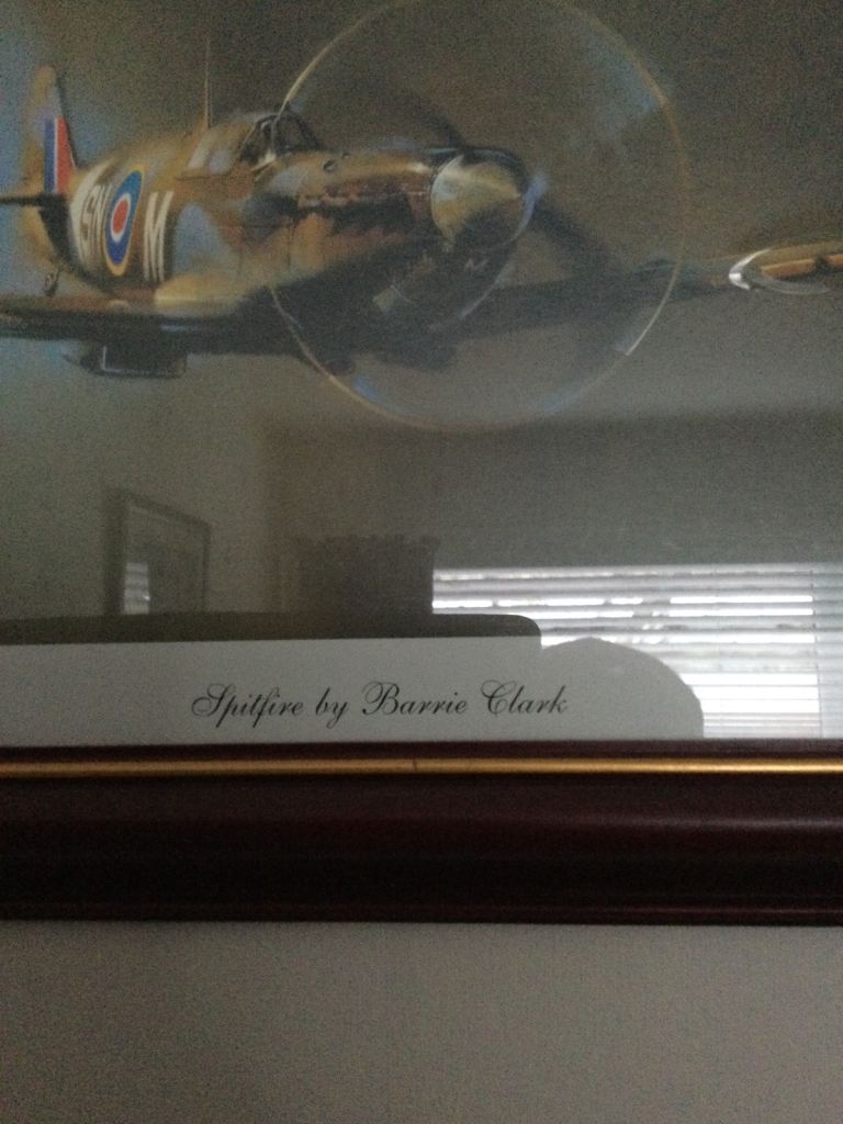 Spitfire picture by Barrie A. F. Clark. Length 26” Height 15”. Used condition. Collection only. £50.00 .Pete.