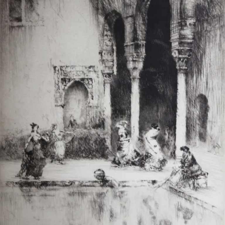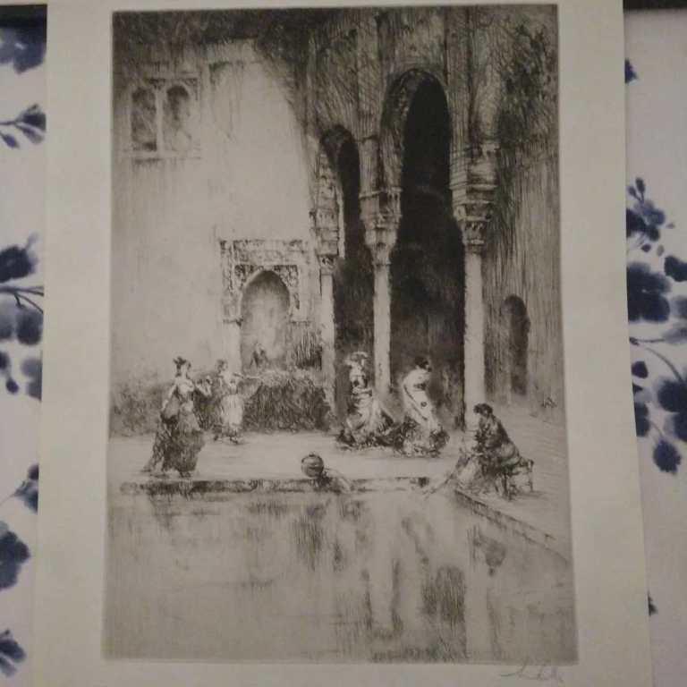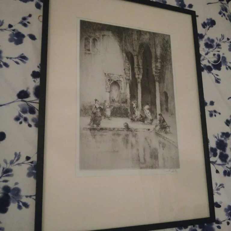 Hello, offered for sale is this etching entitled 'Court of the Myrtles' by Sydney MacKenzie Litten. Signed in pencil by the artist bottom right plus 5XV in the bottom left, I have had these exact same photos looked at by two highly reputatable Artwork Auction Houses who both agreed re originality. Online prices vary greatly so please do some research but priced reasonably, photos were taken prior to new tape being added to rear of frame.