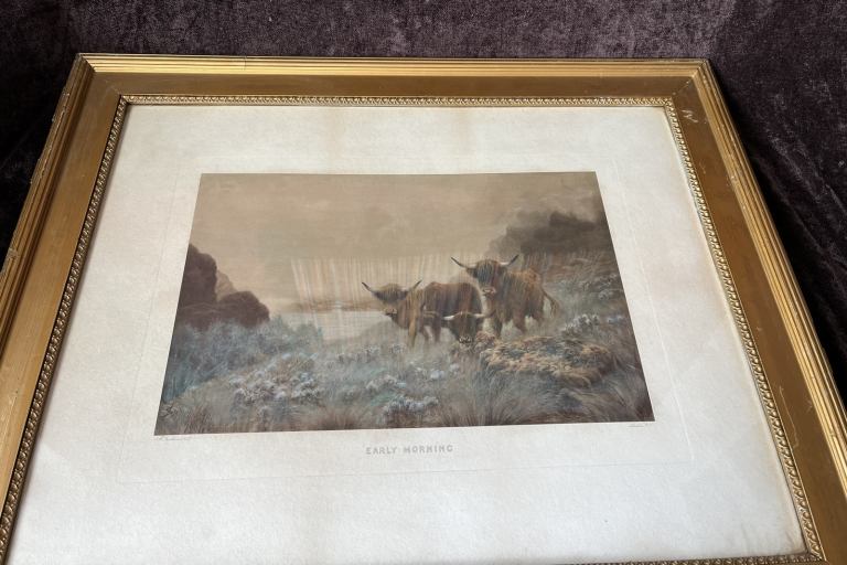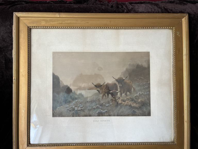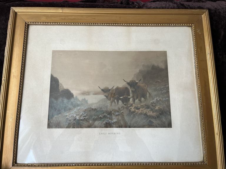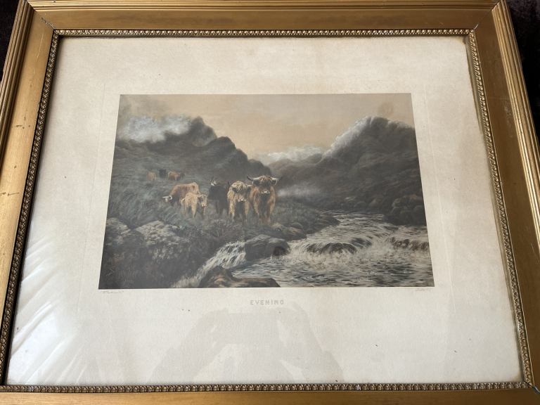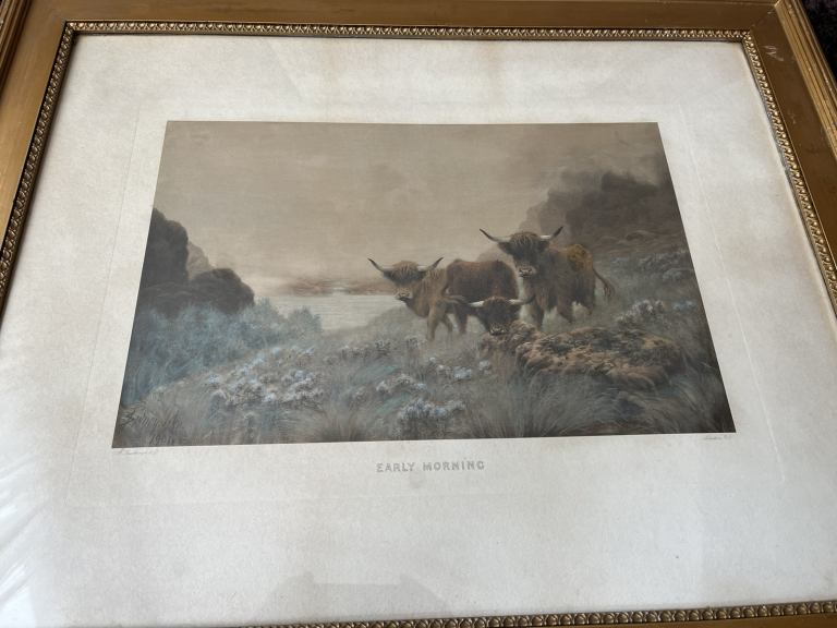 Lovely pair of framed Sydney Pike prints 75cm x 61cm, lovely prints depicting highland cattle.