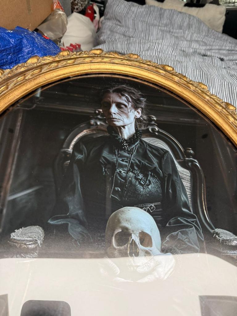 A pair of large oval photo prints from The blackened teeth young/old lady