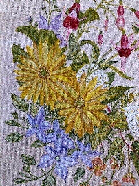 UNIQUE ORIGINAL ACRYLIC PAINTING of FLOWERS FRAMED & SIGNED BY ARTIST, ready to hang