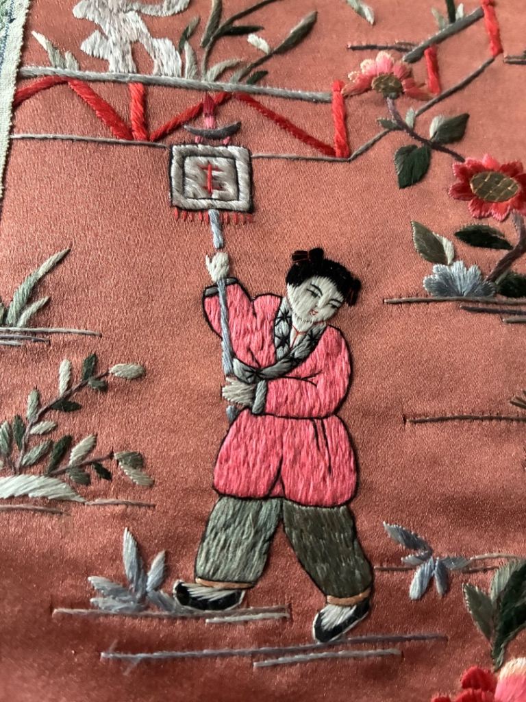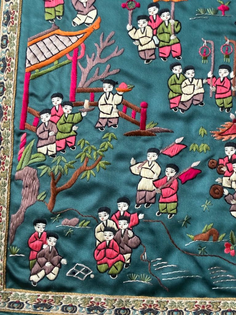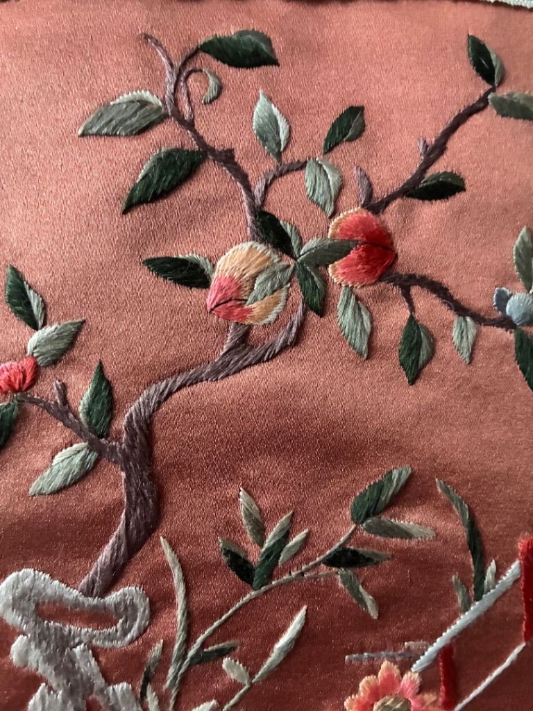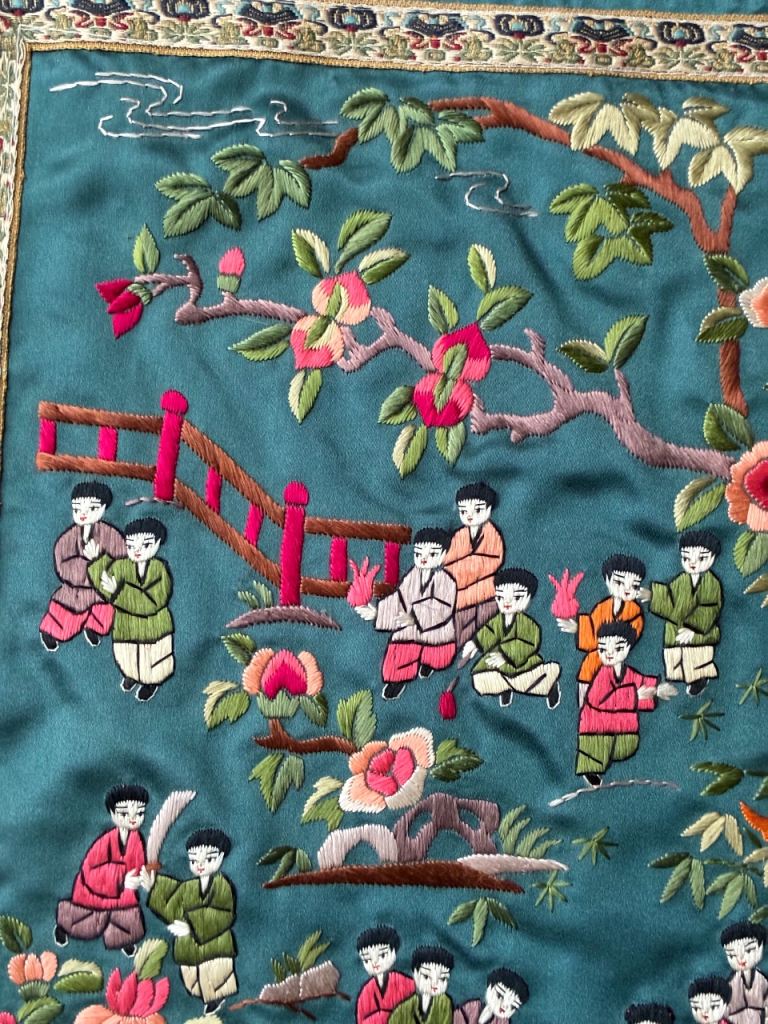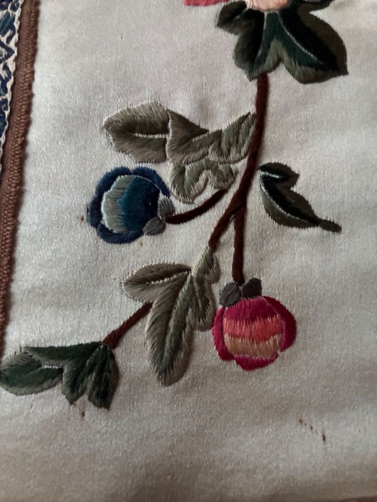 Three embroidered Chinese silk panels. Very good condition and no fading. Largest panel has a few marks on the back (see photo) but does not effect the silk on the front.