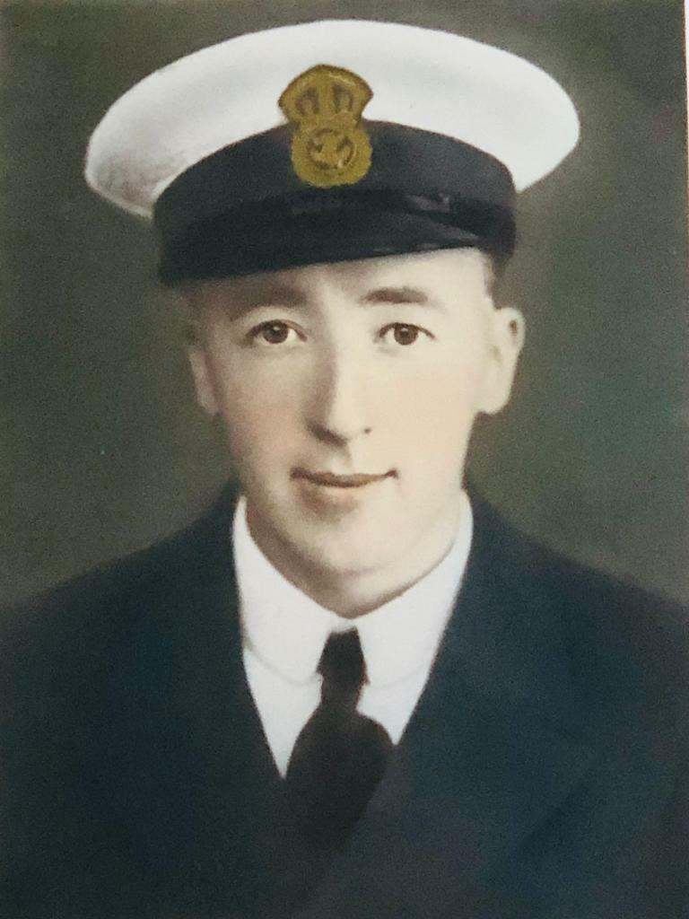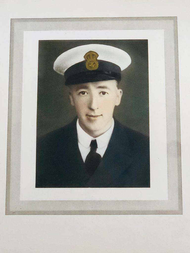 Vintage Framed Colourised Photograph of a Sailor on a Wooden Back
