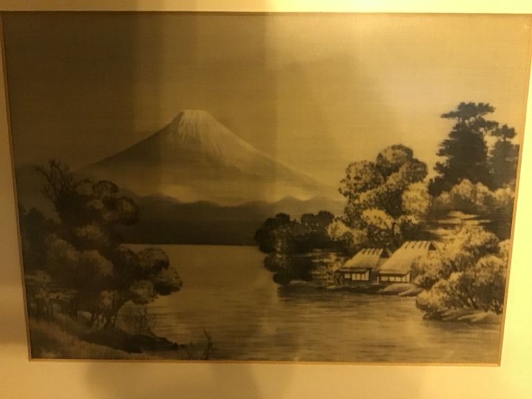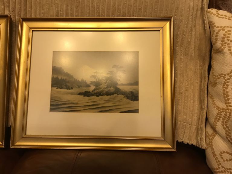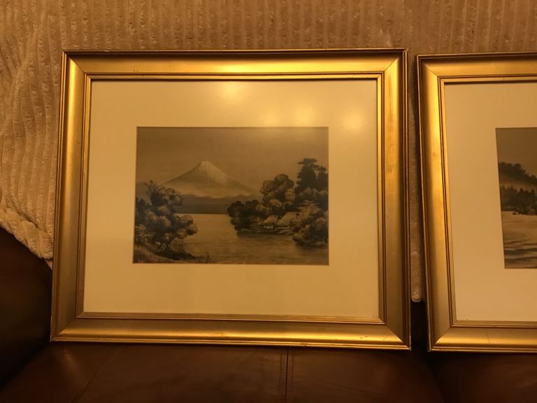2 vintage Japanese silk paintings, Mount Fuji. The outside of the frames measure 47cms (18.5 inches) X 39cms (15.25 inches). Little bit of loss to one frame edge (see photos) but nothing major. Don’t have room for them after downsizing. Cash on collection only from S18 Dronfield Woodhouse area. Bargain £40 for the pair.