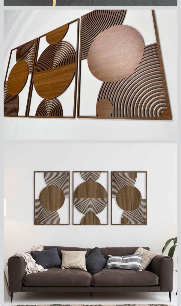 Wall Art Wood – Set of 3 Large Wooden Mid-Century Wall Art