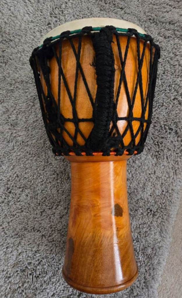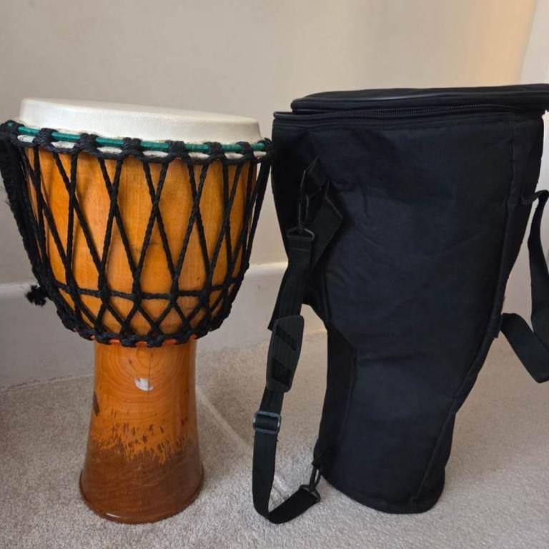 Djembe drum in great condition come with Bag , had it for while and unused .it's been sat on my side my bedroom and unused .anyone who is interested to buy drop me message otherwise wish you good day , about size it's medium size if you going to ask .