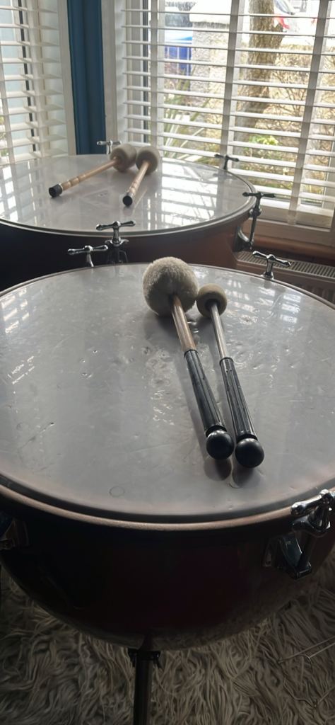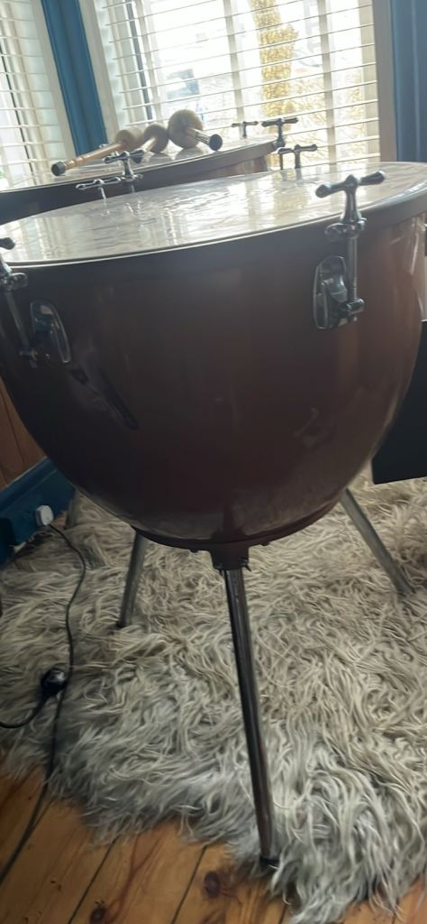 25” and 28” fibreglass Premier Timpani drums, they play absolutely well even though the heads are not at their best