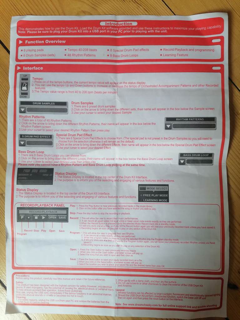 Incudes: drumsticks, CD, instructions, box;