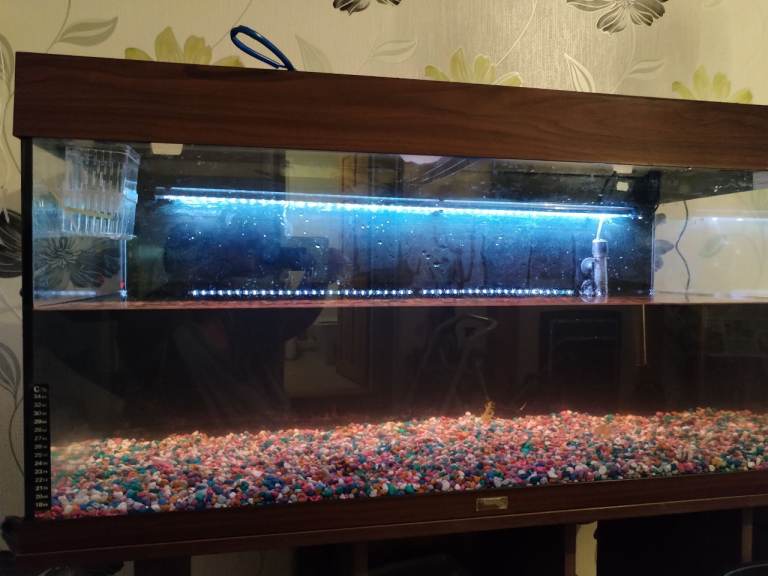 180L Fish tank, no leaks, great condition, plus stand, new filter, new led remote control light, heater, to different types of gravel, net, fish food, collection only
