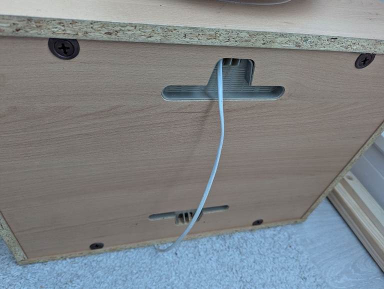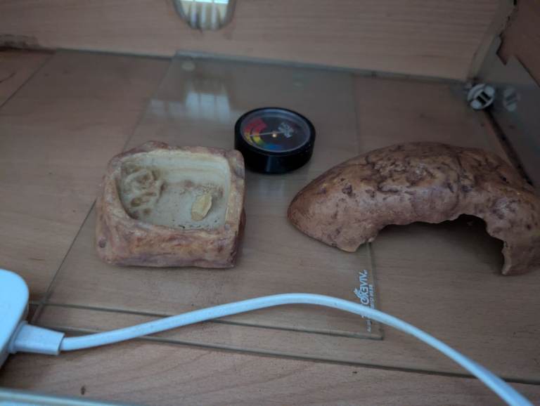 Beech 575x375x421mm vivarium. Small feeding dish, temperature gauge and small plastic house. Arcadia ADBR8 8W Mini UVB Kit fitted. Ideal starter kit for small reptiles. Some minor damage to external surfaces as shown in photos, and has been in the attic for 5 years - will need a thorough disinfecting.