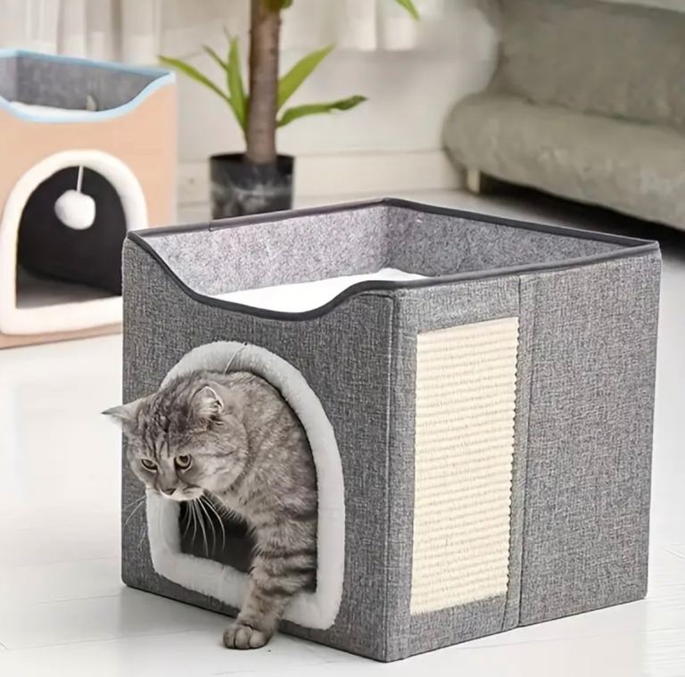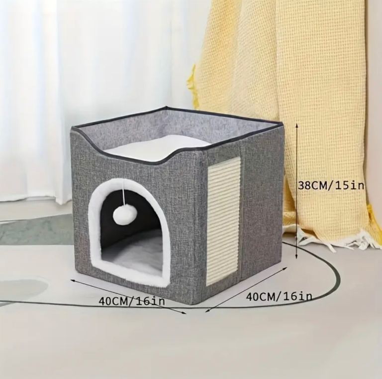 Foldable, closed cat villa, suitable for indoor cats and small dogs, comfortable all seasons, soft fabric, cat house villa