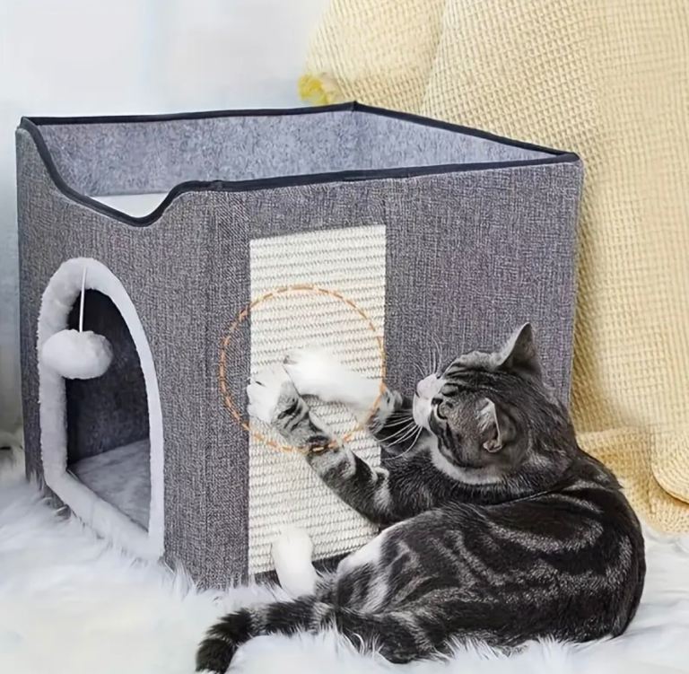 Posting for 1+ months1 Luxury Cat House, Double decker Cat Bed with fluffy balls and scratch boards, comfortable
