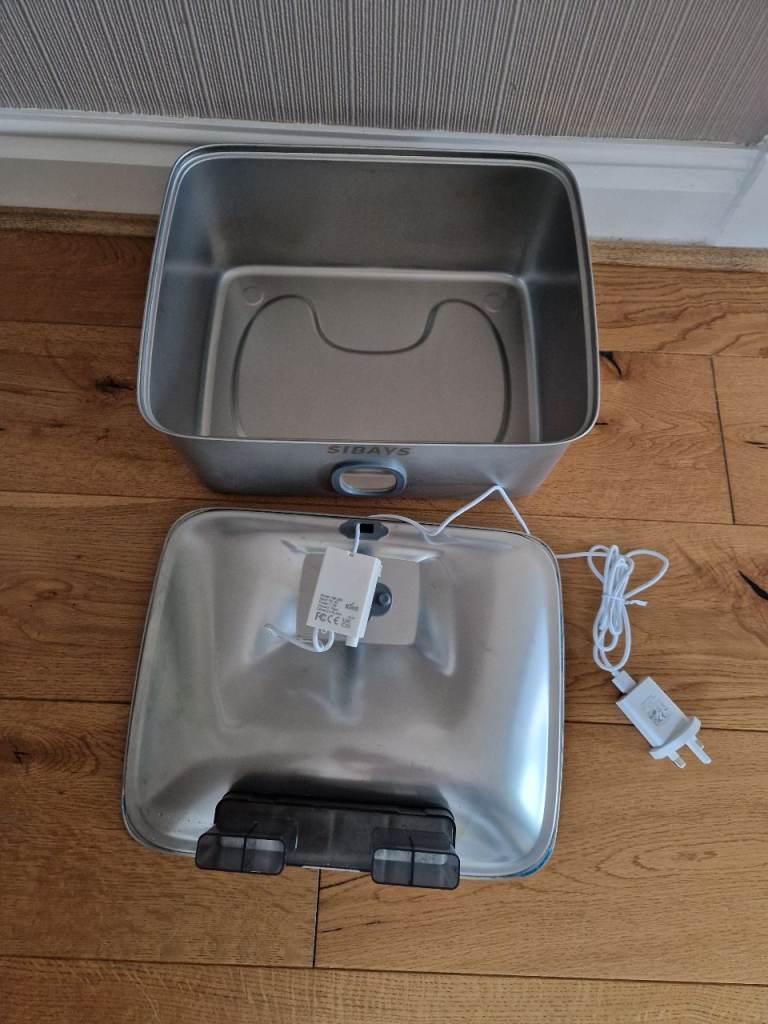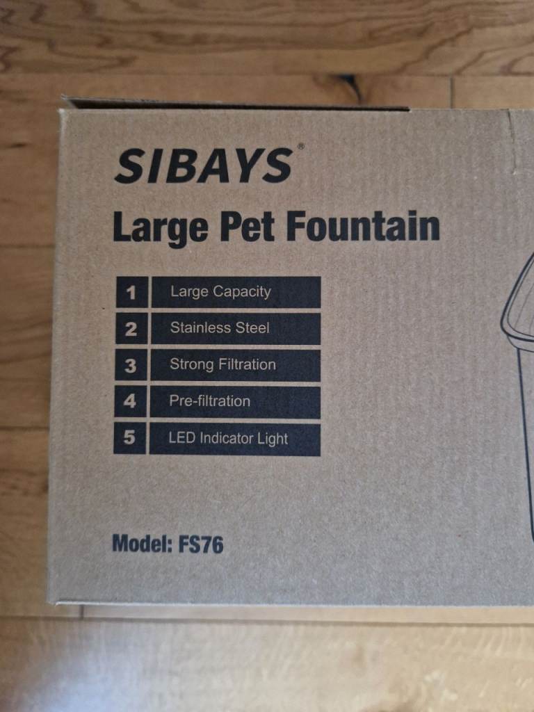 15L stainless steel water fountain, LED water window (tells you when it needs refilling), comes with spare pump filter, plus the original box.