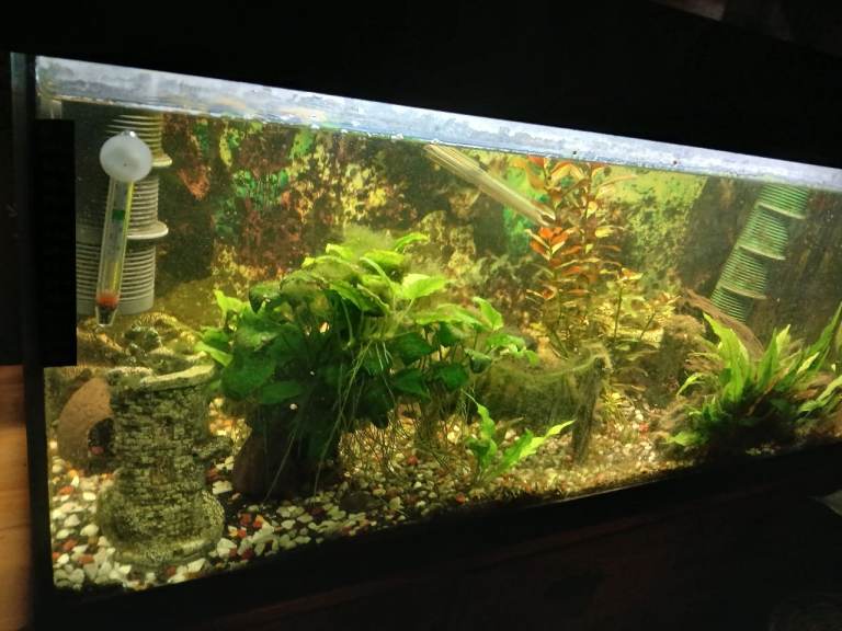Large fish tank 2 filters 2 heaters spectrum light .included pleci and 15 + breeding african chinchilla the krevinsisi no need for nursery as they keep in mouth buyer to collect .make a offer this tanks is well established and fish thriving and we have had babys