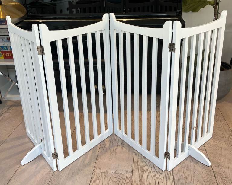 4-Panel Adjustable Pet Gate for doorways/ halls/ staircases. Easy to move around and then fold when not needed.