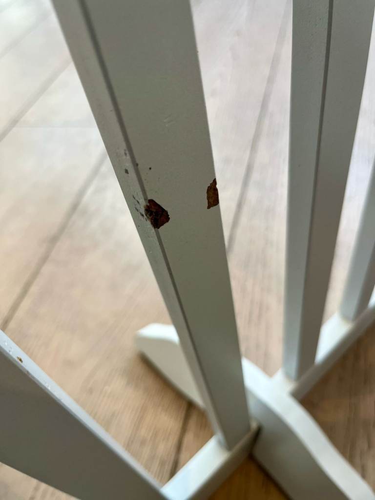 Used, with minor damage (puppy chewing), as shown in the photos.