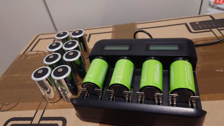 Each feeder comes with 2 bowls and takes 4x C batteries. Including 12 rechargeable C batteries.