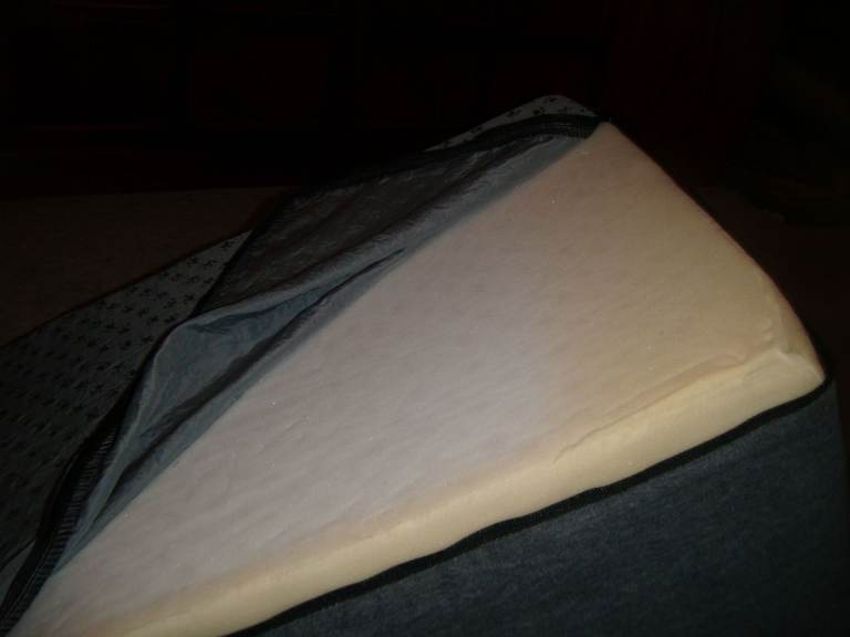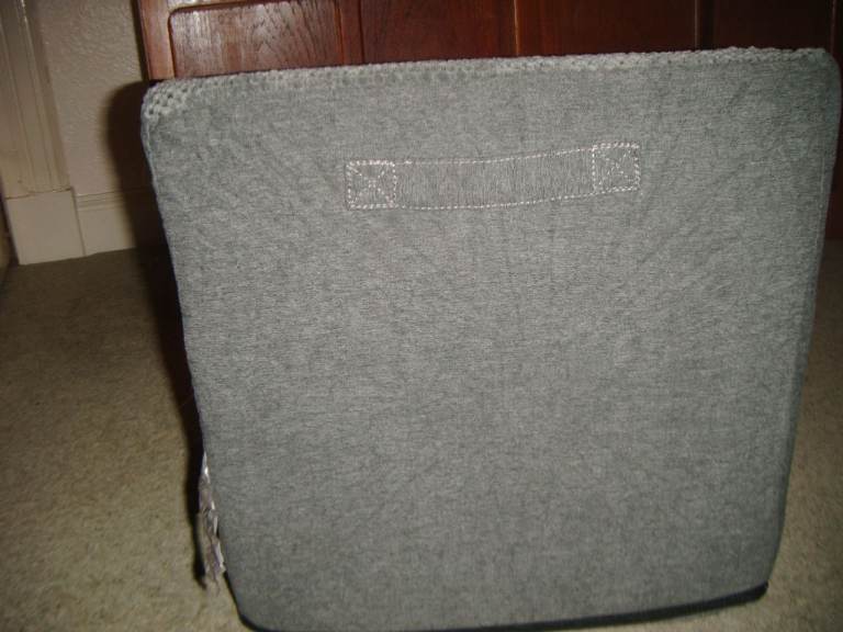 This is about 40 x 40 x 57cm. It has 2 pockets on one side, a carrying handle, a non-slip base material, an anti-slip and tear resistant washable cover (which is zipped for easy removal) and a base of high density foam.
