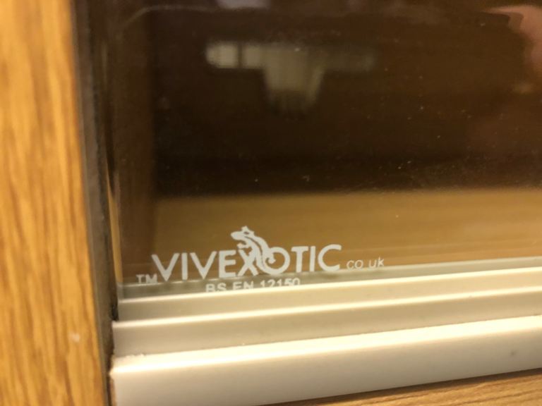Vivexotic vivarium in very good condition with 4 rear easy cable entry vents glass sliding doors with a vivexotic glass lock. All sizes in pictures cash on collection please