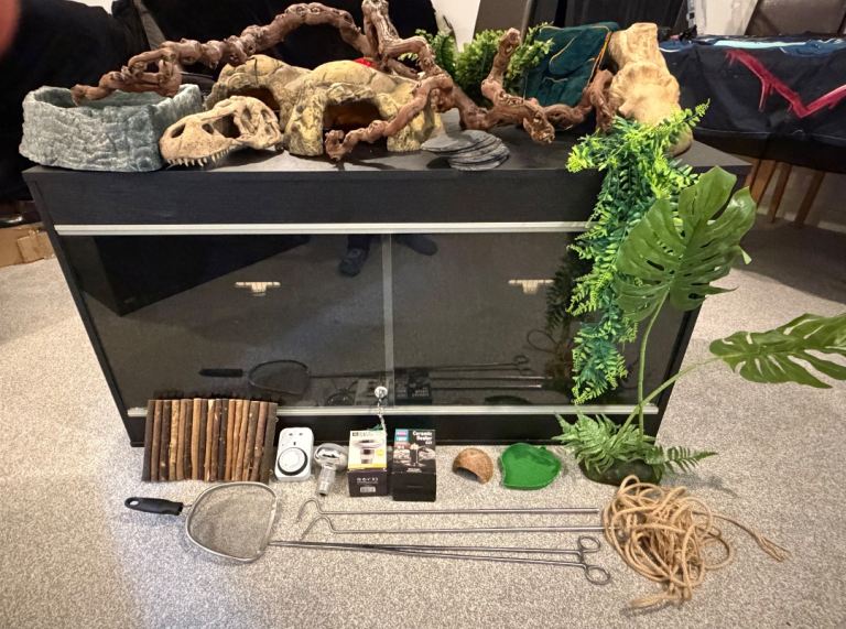 Posting for 8+ months4x2x2 black vivarium and decorations etc…