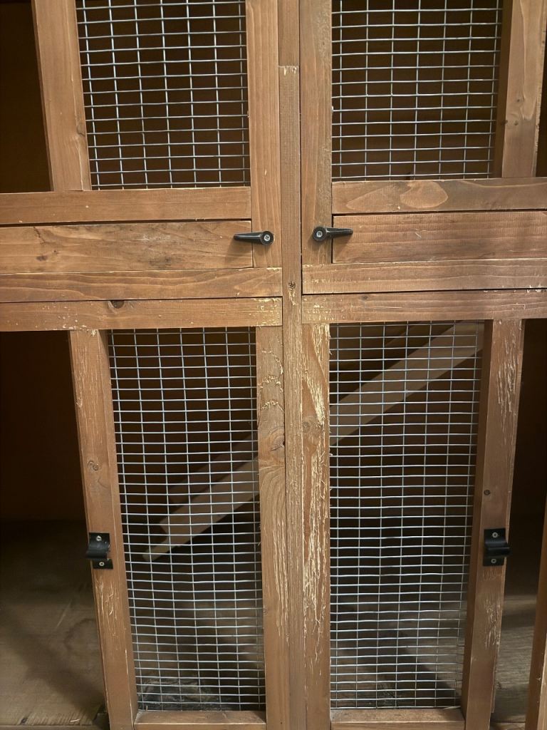 Easy to clean with removable cleaning bar on upper floor. Strong locks on each door for extra security. Compatible hutch covers and rabbit runs can be purchased if needed.