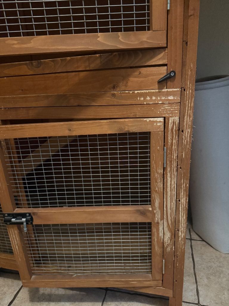 Has only ever been used indoors as a bed area for my buns, has never been used outside so has 0 weather damage. General wear and tear damage (shown in pictures) but otherwise in good condition.