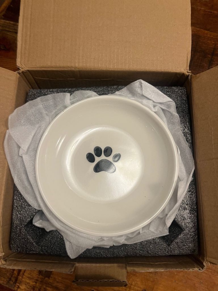 6 Piece Ceramic Cat Bowls with Non-Slip Rubber Base, Flat Bowl for Kittens and Puppies. Brand new in box.