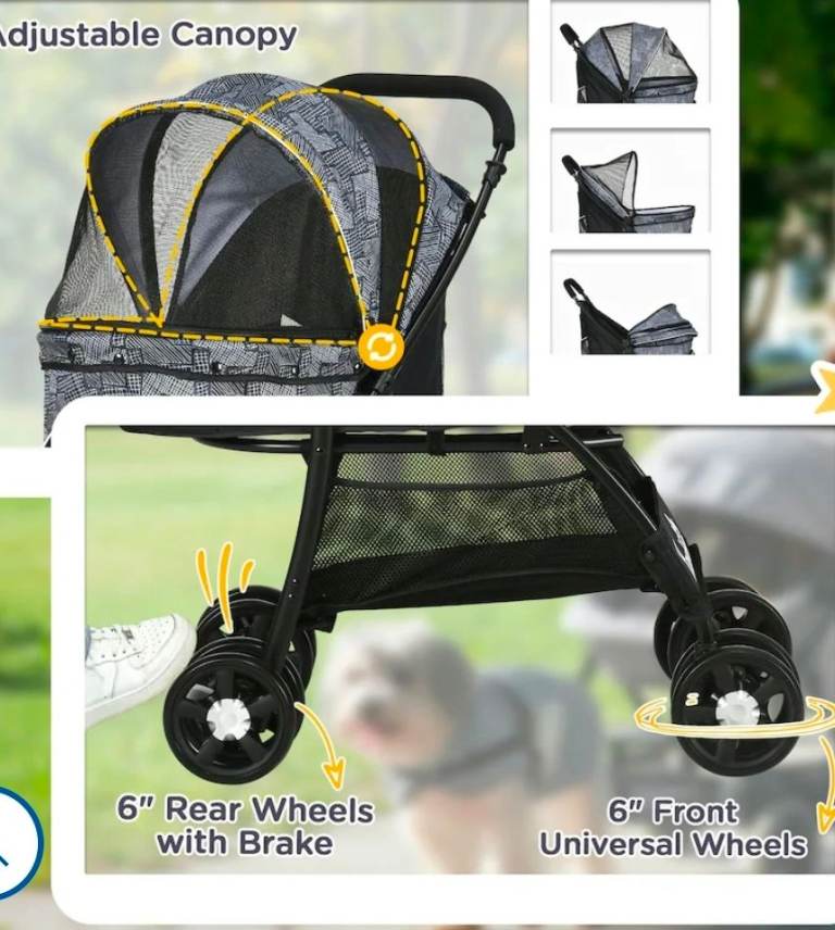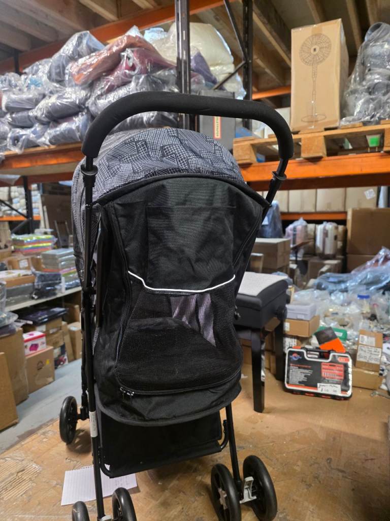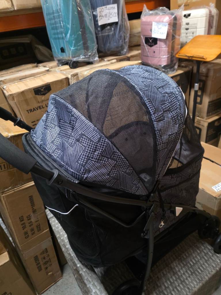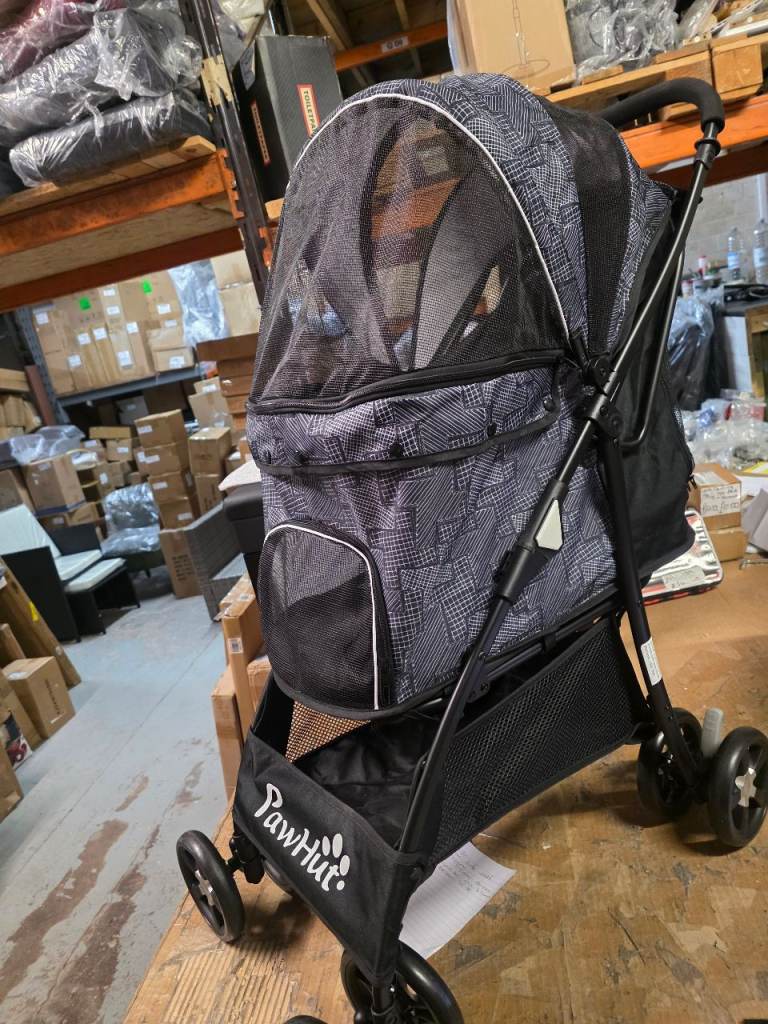 Posting for 11+ yearsA new grey x black folding pushchair for a small dog it has 3