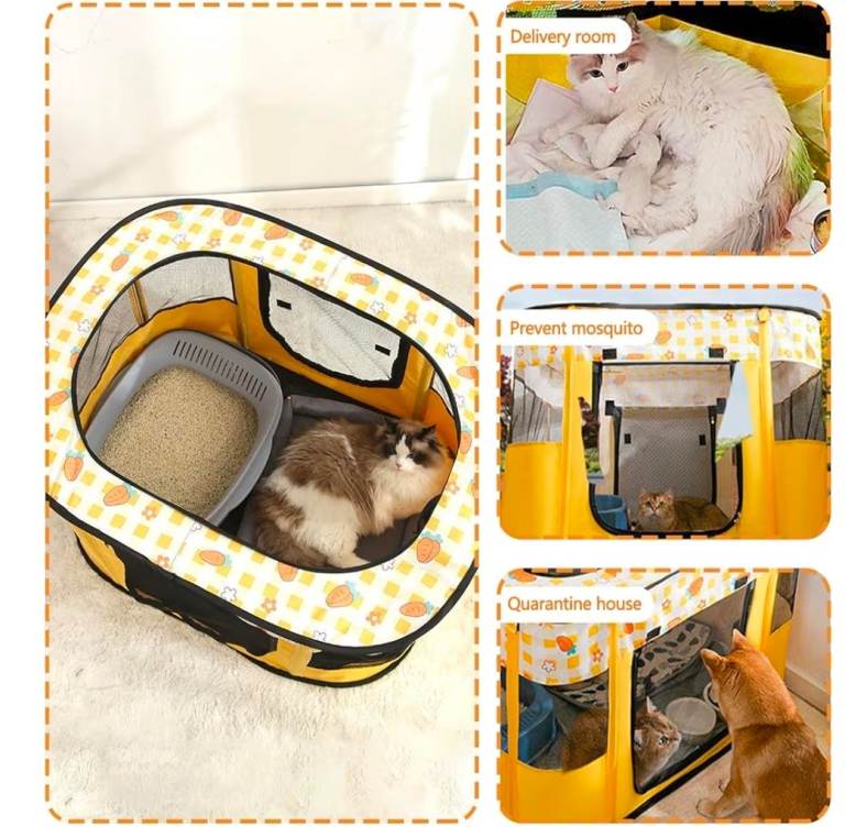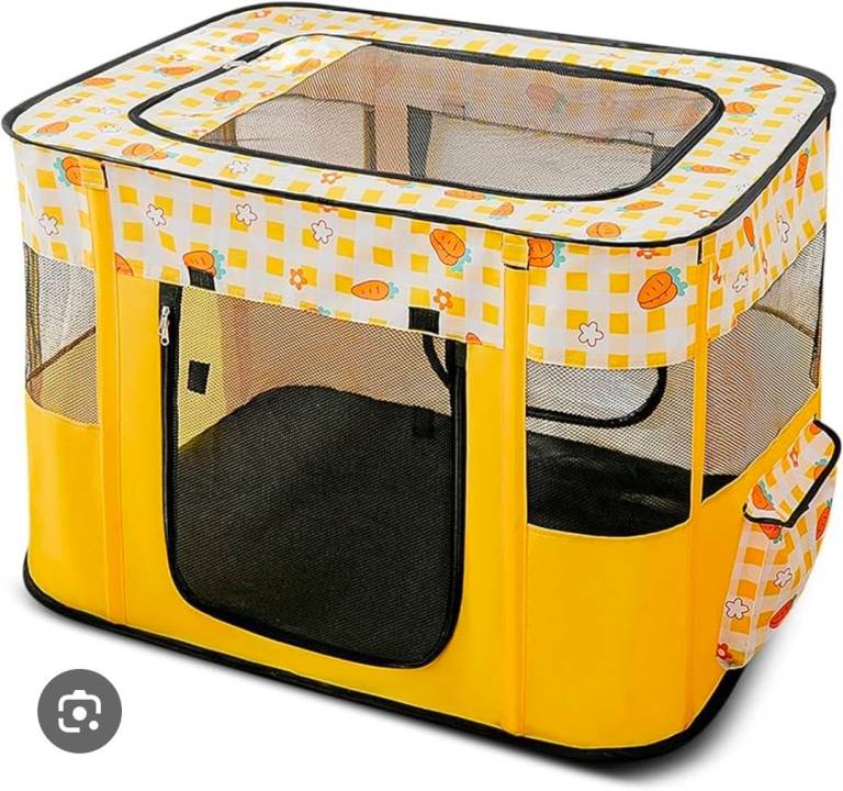 A new Portable Foldable Pet Playpen for cars , kittens, puppy,rabbits ,guinea pigs etc Crates Top Removable Zipper Mesh For Indoor Outdoor Travel Camping Use, Cute Dog Cat Puppy Playpen L Yellow with cute 🥕 patterned detail the measurements are enclosed in the pictures the r.r.p is 22.99 we are selling it for 10.00 collection only it is st aidens Church summer Bank Road Tunstall st6 5ey we are there mon to sat 9am to 3pm with thanks.