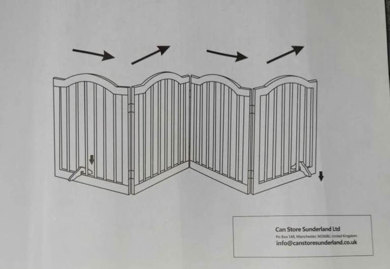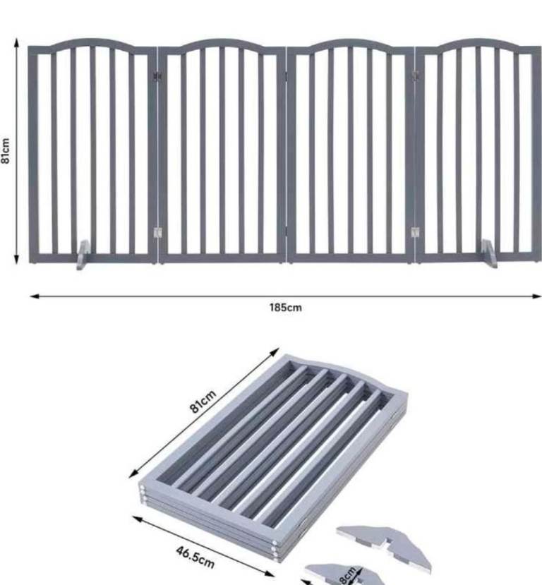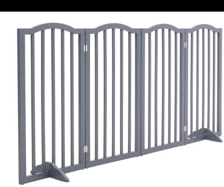 A new still boxed wooden grey folding freestanding 4 panel pet gate with 2 feet / stand the measurements are enclosed in the pictures the r.r.p is 49.99 we are selling it for 25.00 collection only it is st aidens Church summer Bank Road Tunstall st6 5ey we are there mon to sat 9am to 3pm with thanks.