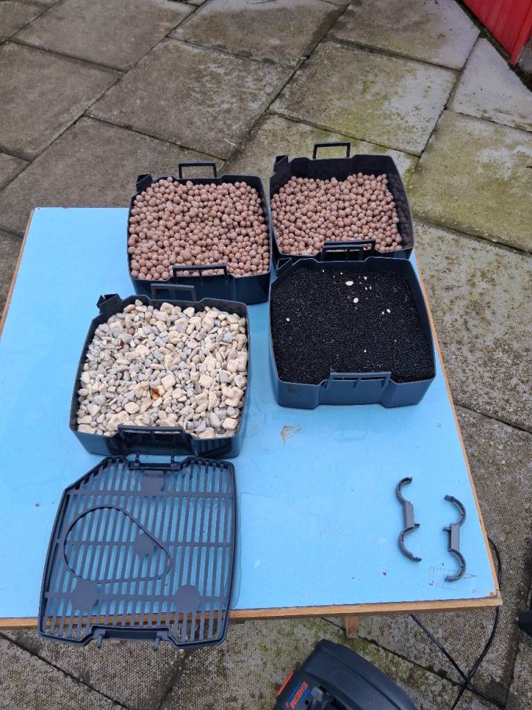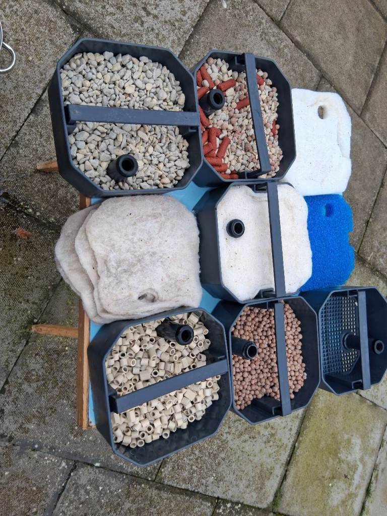 1 Eheim 2075 filter, with intake, outflow, 2 spraybars , various biological media, foams, and 16/22mm tubing.