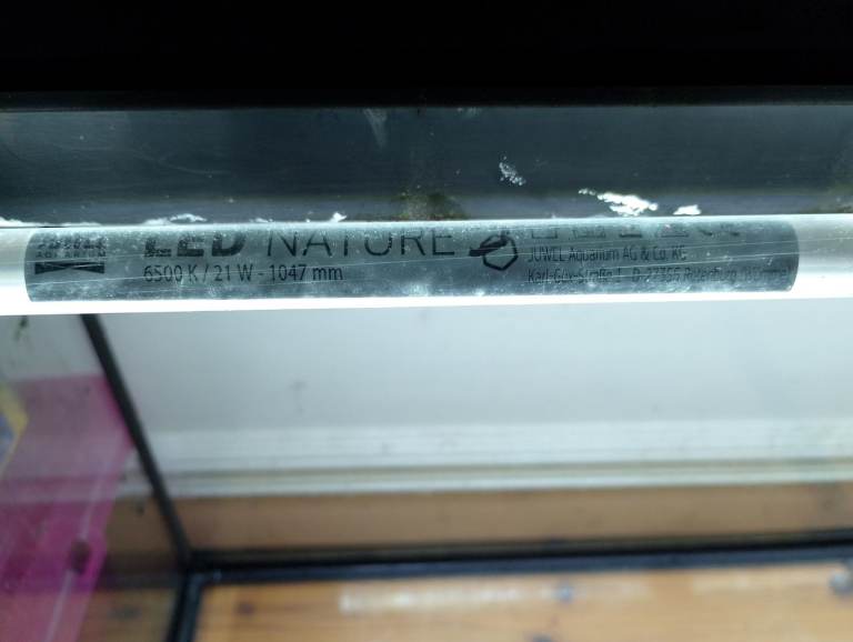 Upgraded to Juwel lighting, double LED 1047mm strips. The way these work is a dual LED tube holder in the middle with a liftable flap each side and each side is in good condition with the 4 notched hinge parts intact as should be.