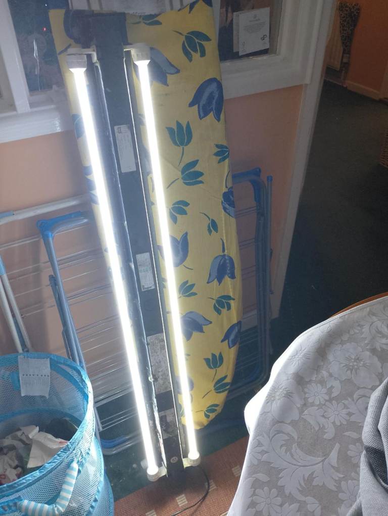 You can see a picture of the LED lights working next to an ironing board.