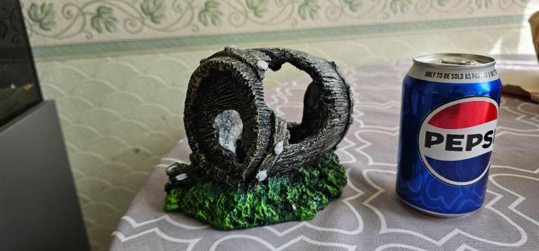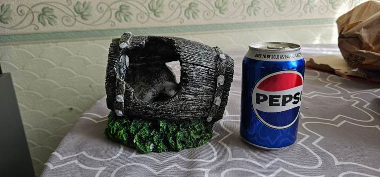 Great barrelled perfect for fish to hide. Looks great in tank. Picture taken next to Pepsi can for size