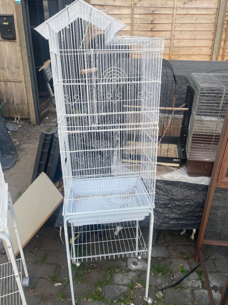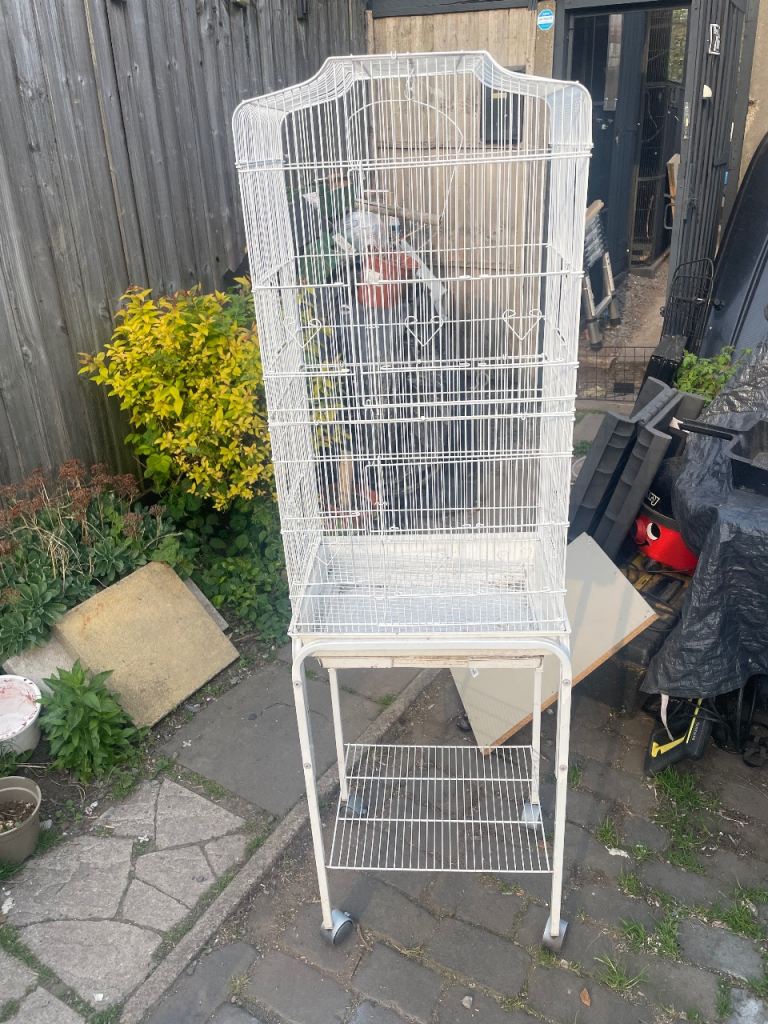 Cage and stand 62 ins tallx17insx13ins approx £35 Ono