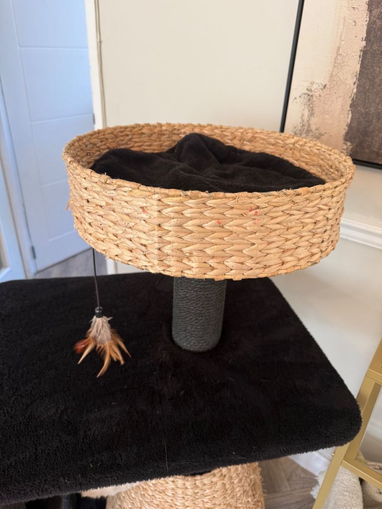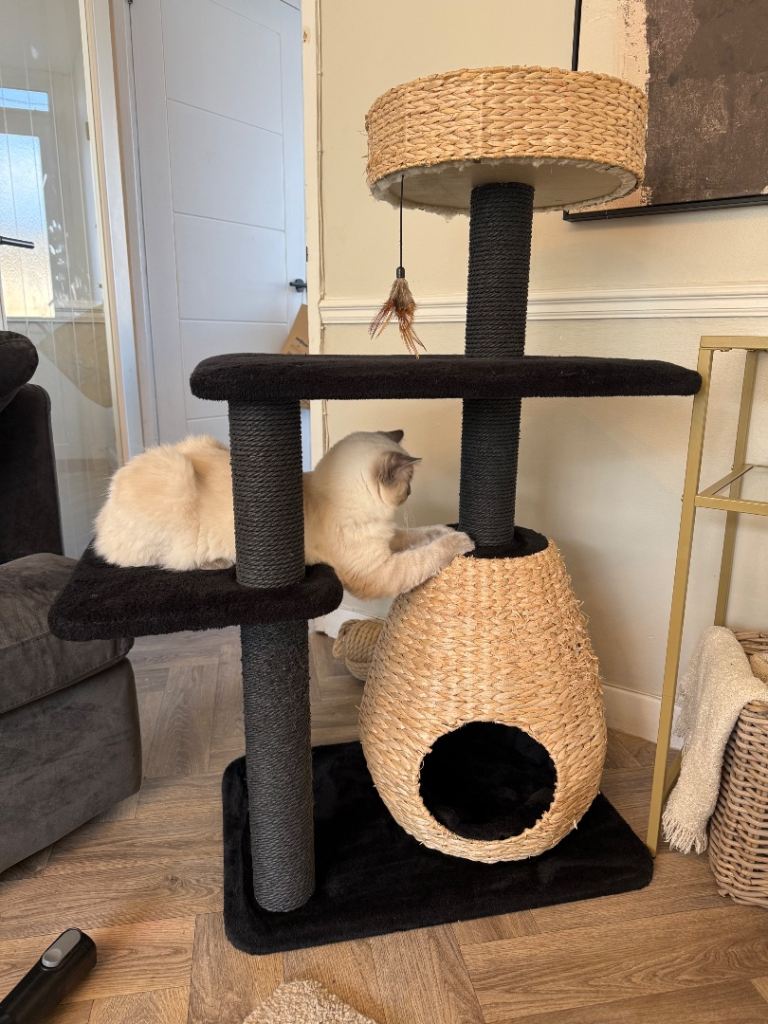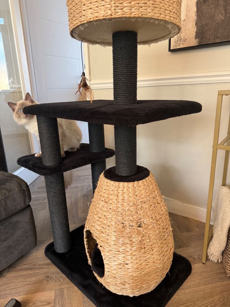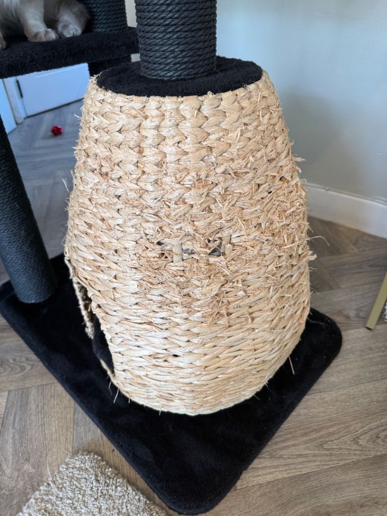 Bought just under a year ago from zooplus. My cats love it but I’m changing colour so have bought new. Very sturdy not a wobble in sight! Very aesthetically pleasing. Only thing wrong with it is that my cats love to stretch out on the rattan basket on the bottom so there is some damage to the rattan itself as seen I pics but could be easily replaced if you know what your doing.